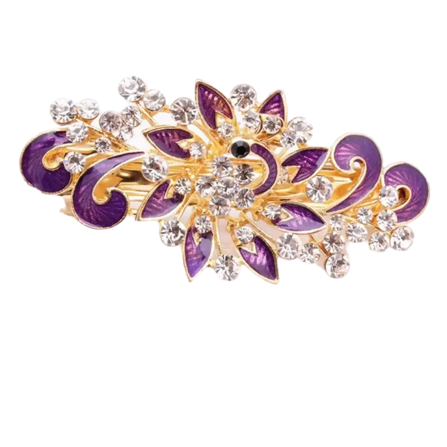 Chaque cristal est soigneusement fixé pour garantir une durabilité exceptionnelle et un éclat durable. La combinaison du violet profond et des cristaux brillants crée un contraste saisissant qui attire les regards. Facile à attacher grâce à son fermoir sécurisé, cette broche maintiendra vos cheveux en place tout au long de la journée ou de la soirée. Offrez-vous ce bijou de cheveux pour un look raffiné et unique.