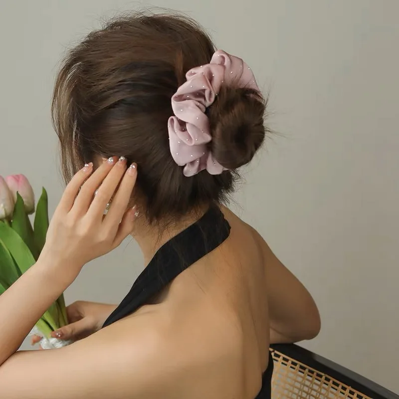 Ajoutez une touche de luxe à votre coiffure avec ce chouchou cheveux en soie rose satin. Ce magnifique accessoire est orné de petites perles délicates, offrant une allure élégante et sophistiquée à vos tenues quotidiennes ou de soirée. Fabriqué en soie de haute qualité, ce chouchou protège vos cheveux tout en leur apportant un éclat subtil et raffiné.
